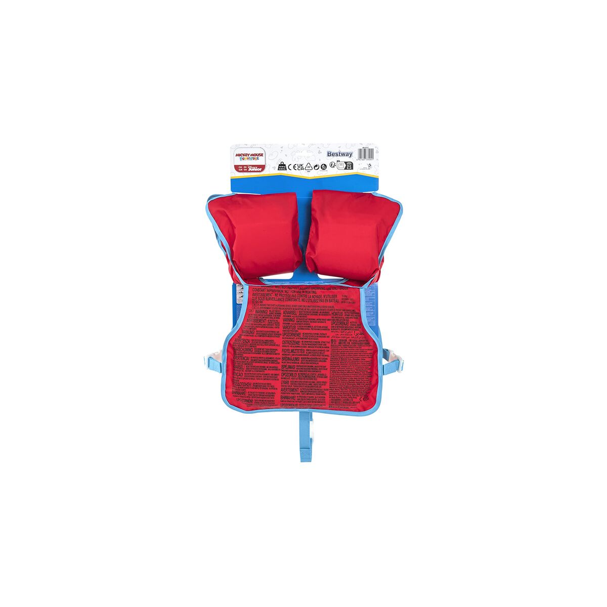 Get ready for summer with the charming armbands from Bestway, specially designed for children! With an appealing red color and a fun **Mickey Mouse** print, these armbands are the perfect accessory for kids to enjoy their days at the pool or beach. Made from soft foam that provides both comfort and buoyancy, they are ideal for helping children aged 3 to 6 years (19-30 kg) learn to swim safely and enjoyably. Thanks to their unisex design and size M/L, these armbands will fit your child's arms comfortably, providing the necessary safety while splashing under the sun. Additionally, they include a swimming vest that will further enhance the experience, allowing children to learn to rotate their arms and practice paddling with their hands in the water. Don't miss the chance to make every day in the water an unforgettable adventure; these armbands are the perfect choice for any little adventurer.